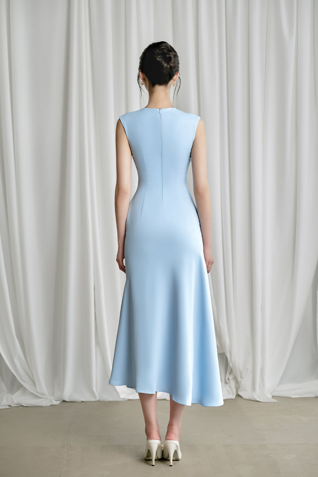 Crafted from premium viscose fabric, this dress offers a flattering A-line silhouette and sleeveless design. Perfect for any occasion, elevate your style with this tasteful and exclusive piece.